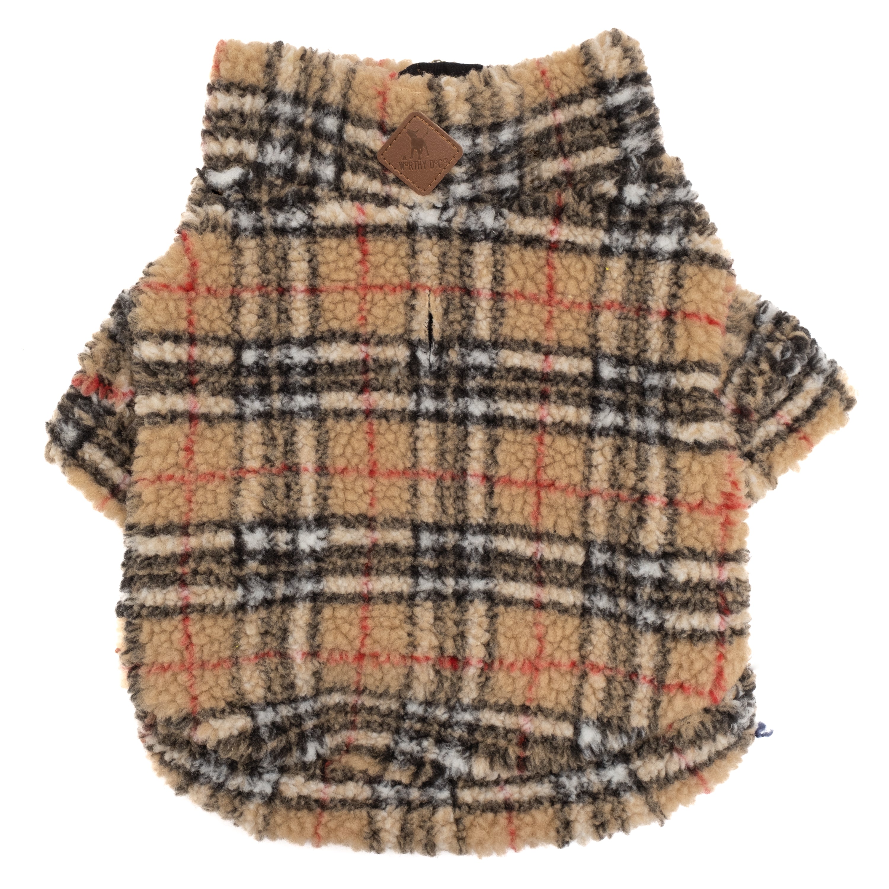 Keep your pup warm and stylish with this cozy quarter-zip pullover. The plush sherpa (faux shearling) outer and soft knit lining deliver serious warmth without bulk, while the classic hunter/navy plaid pattern adds timeless cold-weather style for everyday walks and lounging at home.