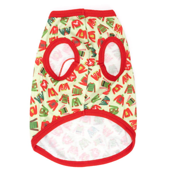Let your pup make a statement in the Ugly Christmas Sweater Tee! The soft and stretchy design provides an excellent fit for a wide range of dog body shapes, keeping them comfy on the move. The lightweight, breathable fabric can be worn anytime, and the stretchy pullover style makes dressing easy, quick, and stress-free.