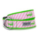 - Woven patterned ribbon stitched onto durable nylon webbing.
