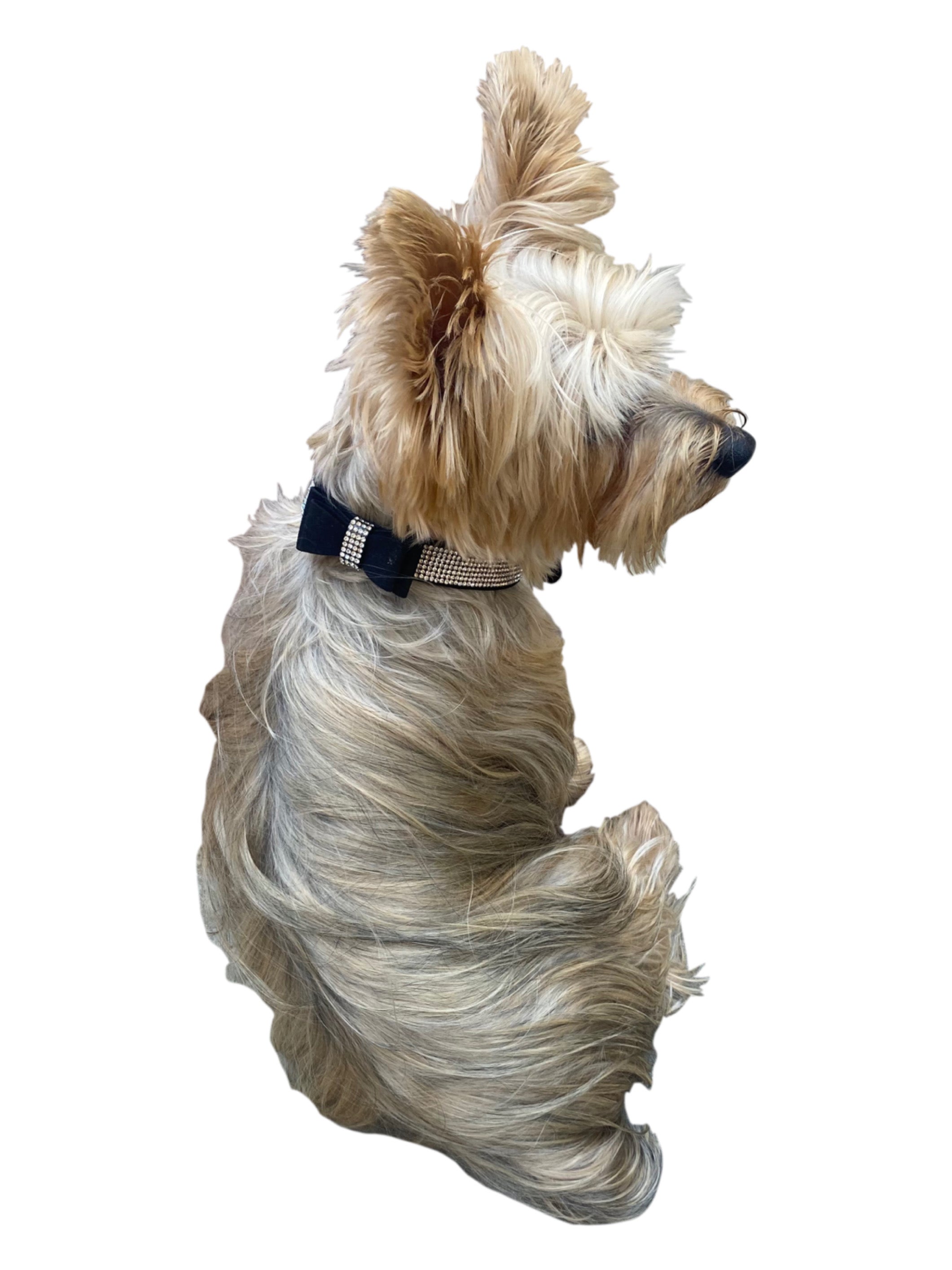 Adorn your pup's wardrobe with this dazzling rhinestone-studded pleather bow-tie collar--perfect for daily walks and special occasions alike!