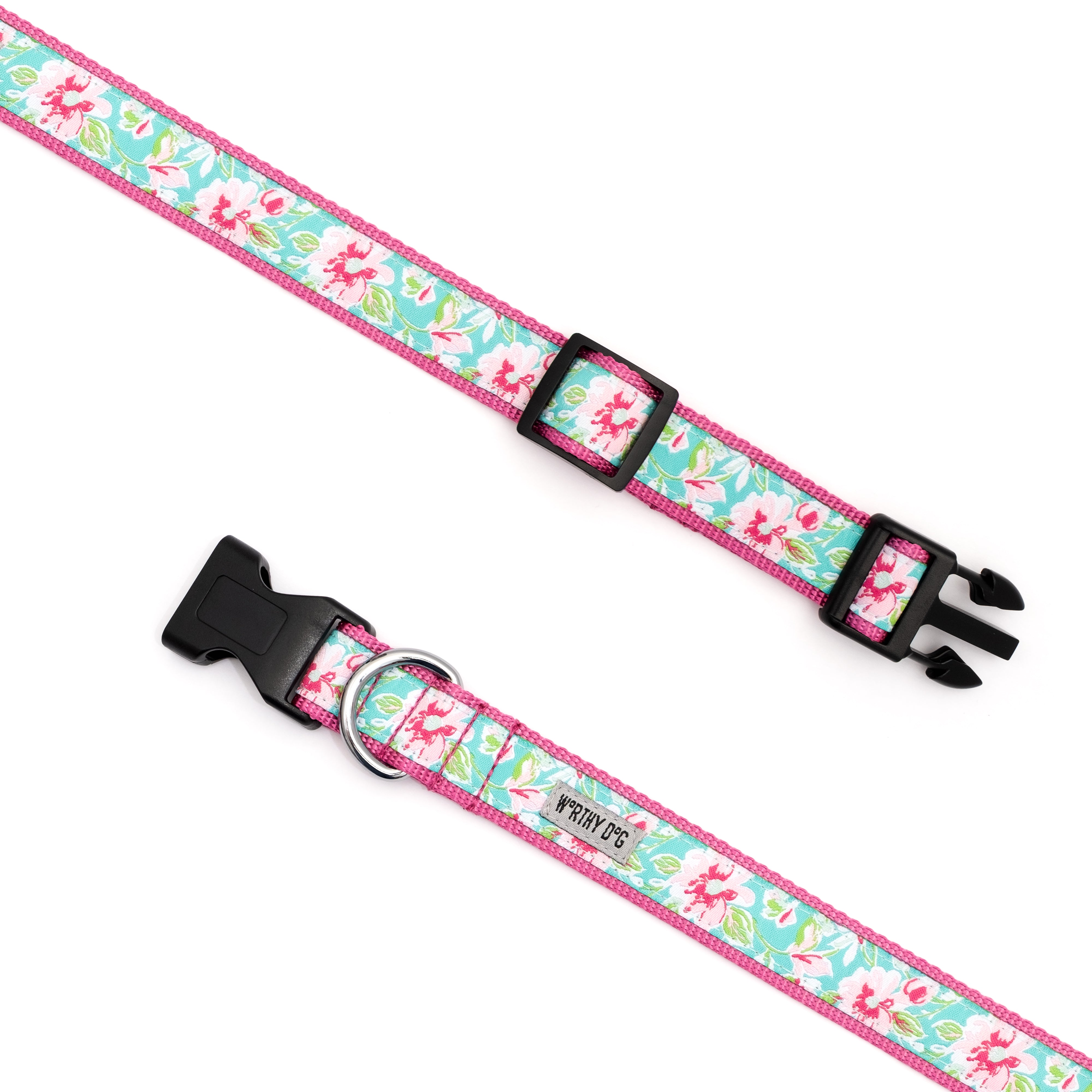 Give your dog a collar that looks great and lasts. This everyday collar pairs a woven patterned ribbon with strong, comfortable nylon webbing for style that stands up to daily wear. A secure quick-release buckle makes on/off fast (and easy to remove in an emergency), while the nickel-plated D-ring keeps ID tags and leashes within easy reach. Available in multiple sizes with generous adjustability to help you dial in the perfect fit for pups big and small.