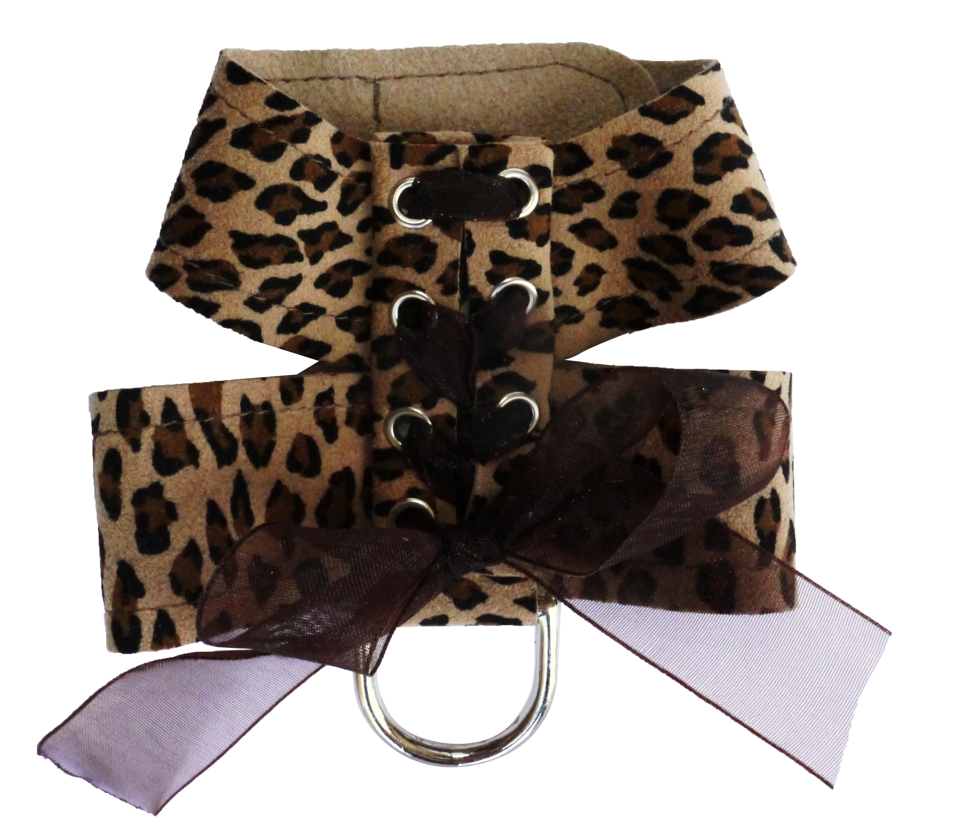 Your dog will always be ready for a closeup with The Dog Squad's Parisian Corset Harness. Made in earth friendly, recycled Ultra Suede, this harness features solids and animal prints with a corset back. The Parisian Corset is a classic that will last for years and is easy to spot clean or machine wash. The lightweight harness features velcro adjustability and will fit a range of sizes. 4' Matching leash also available.